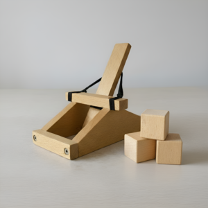 Take turns shooting the catapult at your opponent’s build. Whoever’s walnut game piece touches the floor first loses!
